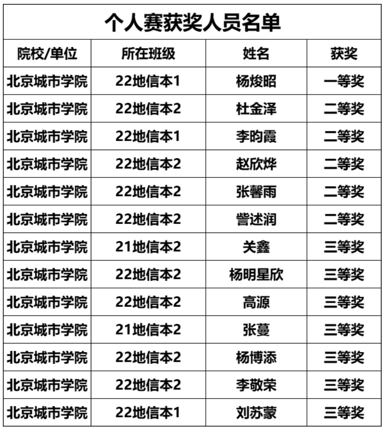本次大賽由中國信息協會主辦,旨在選拔和培養具備地理信息相關技能和知識的優秀技能人才,促進地理信息技術的交流、創新和發展,推廣并樹立地理信息應用優秀成果,助力數字化轉型和數字經濟高質量發展。今年,地理信息技術與應用技能大賽(個人賽)分為在職、高等院校、職業院校三組,共吸引了來自高等院校、職業院校、企業事業單位、政府相關部門的近3000人參賽,最終311人在個人賽中脫穎而出,其中一等獎31人,二等獎98人,三等獎182人。此次大賽不僅為學生們搭建了一個展示自我、提升技能的平臺,也對推動地理信息科學專業建設的創新與發展起到了重要作用。