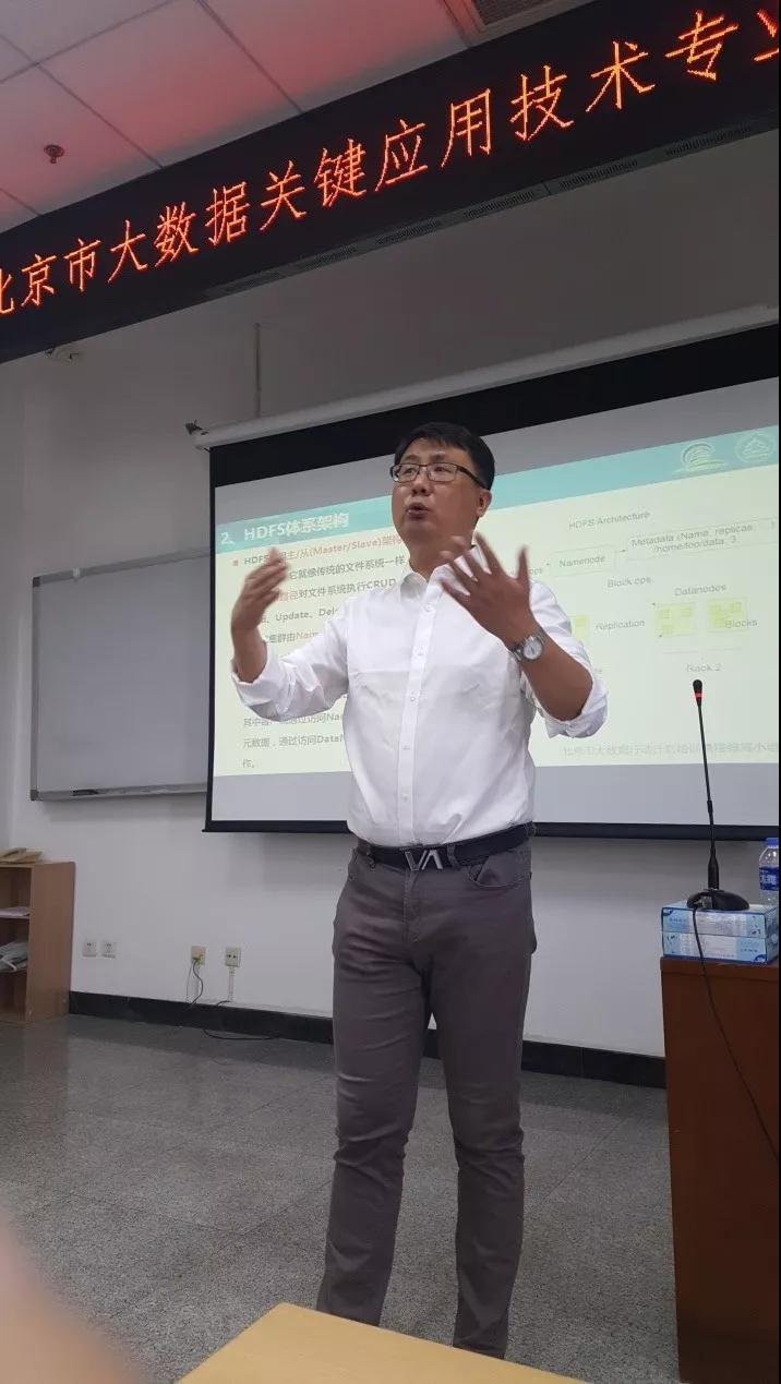 85位來自市、區政府部門的大數據應用項目管理人員,以及大數據應用試點示范、社會數據合作簽約單位的技術負責人,參加了為期四天的專題培訓。市經信局邀請了來自北京城市學院、北京交通大學、首都師范大學、騰訊、阿里等大數據人才培訓示范基地和大數據教學實踐基地的優秀培訓教師,對《北京市大數據頂層設計》、《大數據采集與融合》、《大數據存儲與計算》等大數據核心課程進行系統化講解。我校大數據學院教師石明翔受邀主講《大數據存儲和計算》專題。