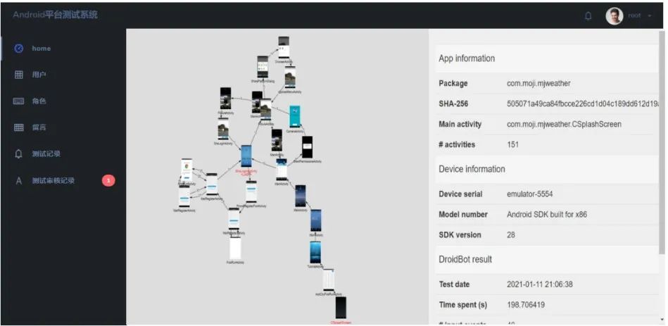 本項研究工作將提出一種Android應用測試用例生成方法。其核心思想是根據歷史經驗數據自動化生成測試用例,并記錄測試用例執行過程生成測試報告(測試報告以網站形式展現,要求展示每一步測試狀態,以及狀態轉換圖,并對Activity和結構做聚類,提供代碼覆蓋率報告),最終為實現高方法覆蓋率的測試目標提供思路。