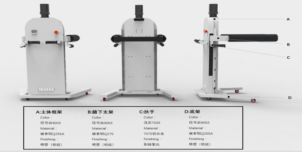 采用步進電機加減速和絲杠外加直線導購分散受力的方式,整體裝置扭矩輸出大、行程范圍大,可以滿足大體重、身體高的老年人,參數(速度、行程)可調,滿足私人定制。該設計填補了市場的空白。