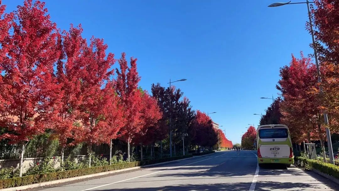 新的開始——紅葉與校車--曹羽中--初秋9月也是21級剛?cè)雽W的時候,也是他們北城求學時光的開始。預示新的起點。教育工作者從北京四面八方來到順義校區(qū),從事教書育人的工作,為祖國培養(yǎng)下一代。