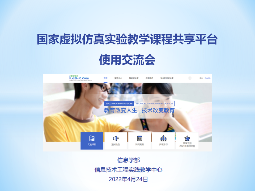 為推進虛擬仿真實驗在學(xué)部實踐教學(xué)中的應(yīng)用,4月24日,信息學(xué)部舉辦國家虛擬仿真實驗教學(xué)課程共享平臺使用交流會,學(xué)部全體老師參加。