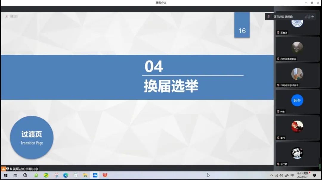 2022年7月7日,零點工作室開展期末工作總結暨負責人換屆選舉活動,指導老師高秋紅和全部工作室成員線上參會。