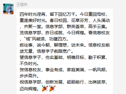 初春四月,花香滿園,4月15日,信息學部積極配合學校校友返校日工作,開展了豐富多彩的校友返校活動。