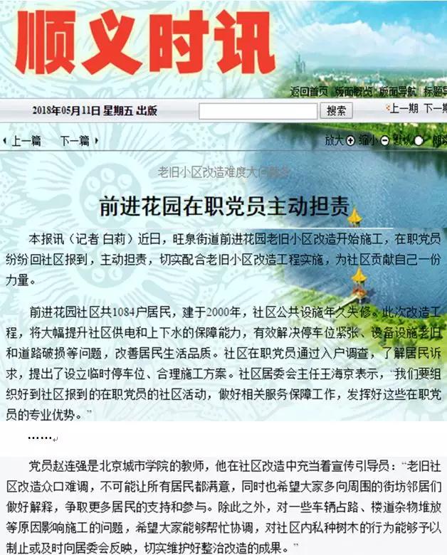 《順義時報》報道趙連強老師社區改造中突出事跡