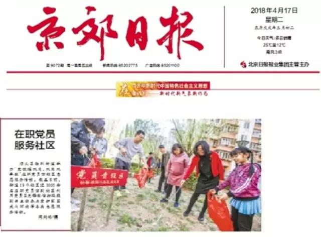 《京郊時報》報道尹麗麗老師參與的怡馨家園第二黨支部 “愛護家園清潔環境” 活動