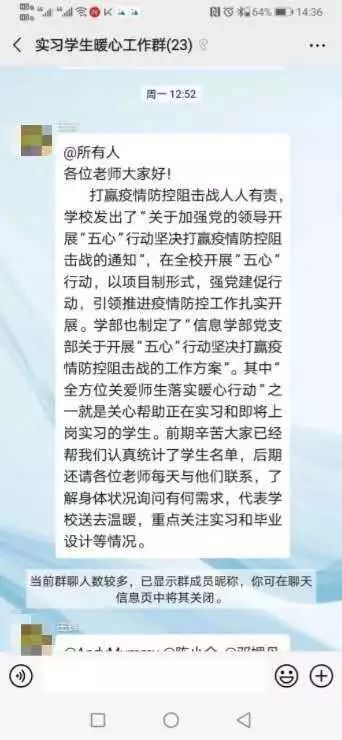 主動(dòng)關(guān)心詢問(wèn)在京自我隔離教職工個(gè)人及家屬身體狀況,是否有什么困難等。