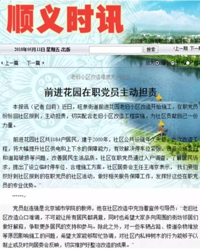 《順義時報》報道趙連強老師社區改造中突出事跡