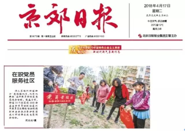 《京郊時報》報道尹麗麗老師參與的怡馨家園第二黨支部“愛護家園清潔環境”活動