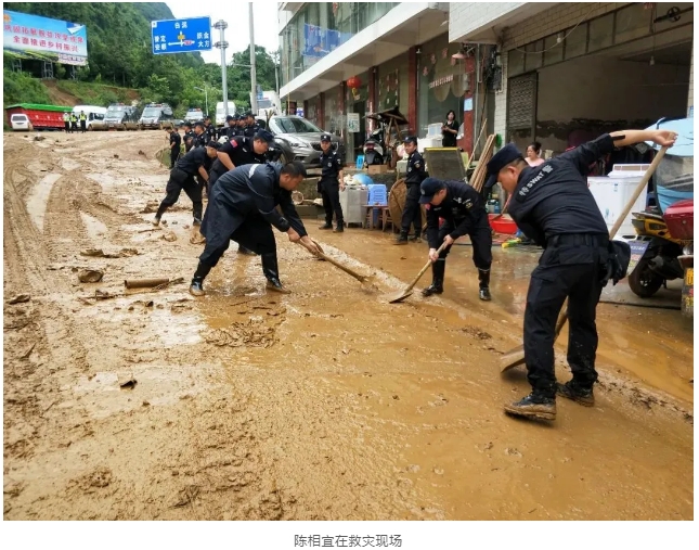 經過一整夜的救援,織金縣公安、消防、武警等救援隊伍迅速將被困群眾全部轉移到臨時安置點。陳相宜和其他救援隊伍一樣,24小時堅守在崗,積極投入到救災和災后重建等工作中。頭兩天救災任務較為繁重時,陳相宜和很多人一樣,只睡了三四個小時,其他救援力量撤走后,他們仍然奮戰在災后重建的一線,直到秩序完全恢復。
